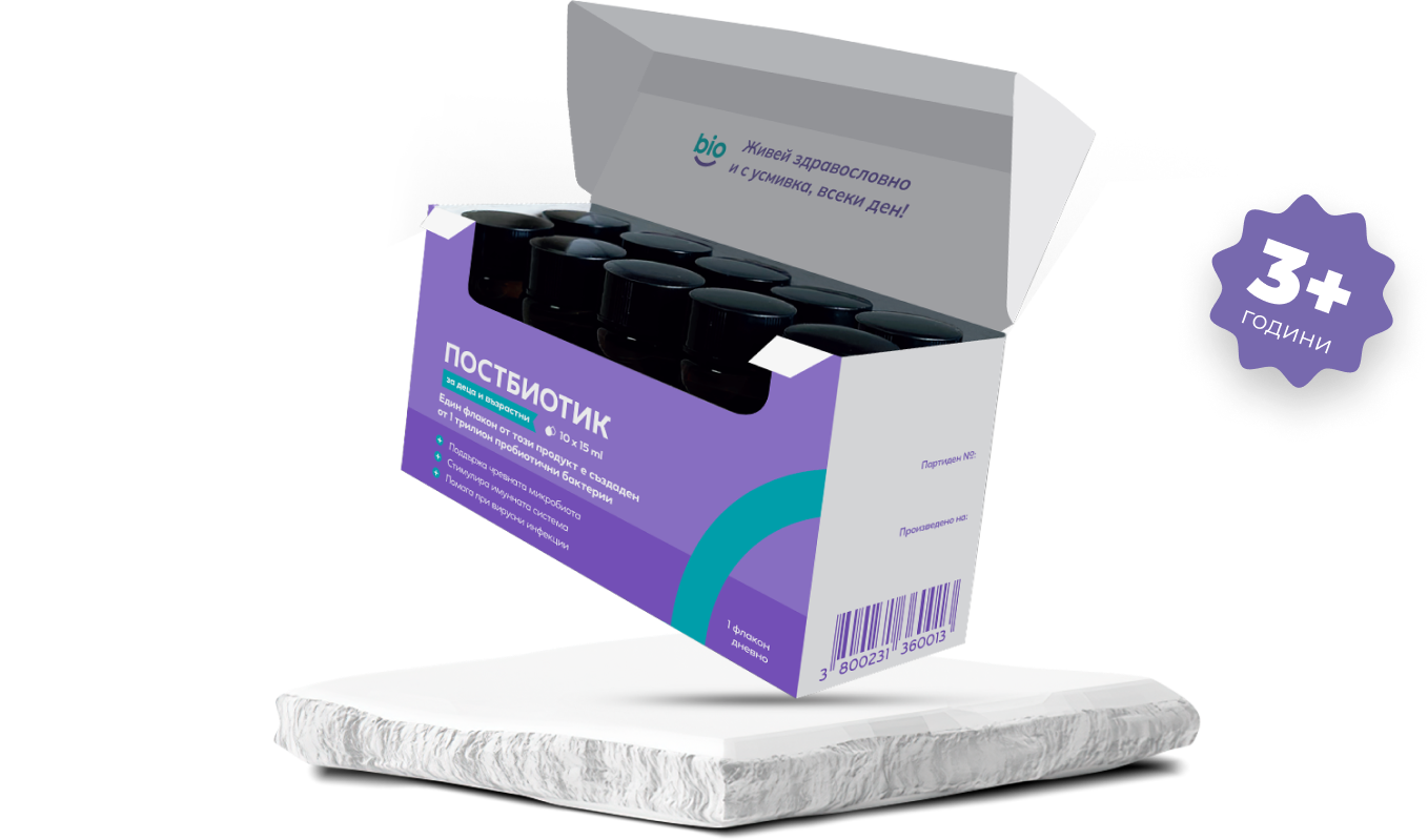 ПОСТБИОТИКЪТ „bibiotic” е нов, иновативен продукт, част от семейството на „биотиците“. ПОСТБИОТИКЪТ „bibiotic” е продукт, който съчетава всички преимущества на пробиотиците, пребиотиците и синбиотиците, но нито един от недостатъците им. Той не съдържат живи микроорганизми, а само произведените от тях метаболити, както и инактивираните клетки на тези микроорганизми, техни структурни компоненти и биоактивни вещества. Иначе казано, „bibiotic” ни дава наготово всички полезни вещества, които са необходими за бързото балансиране на чревната микробиота, като едновременно с това стимулира развитието на нашите собствени бактерии, което от своя страна гарантира продължителен ефект след приема.