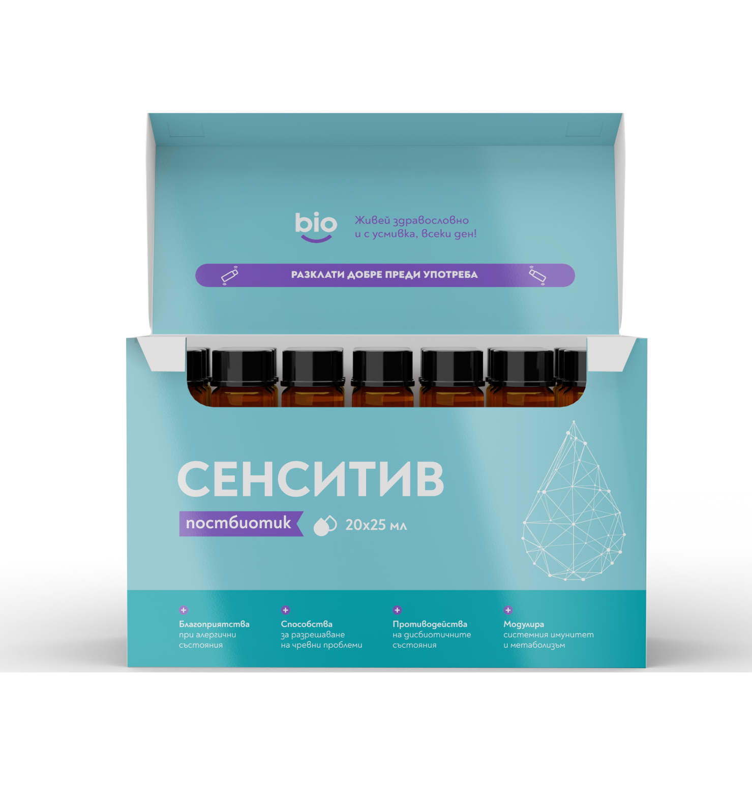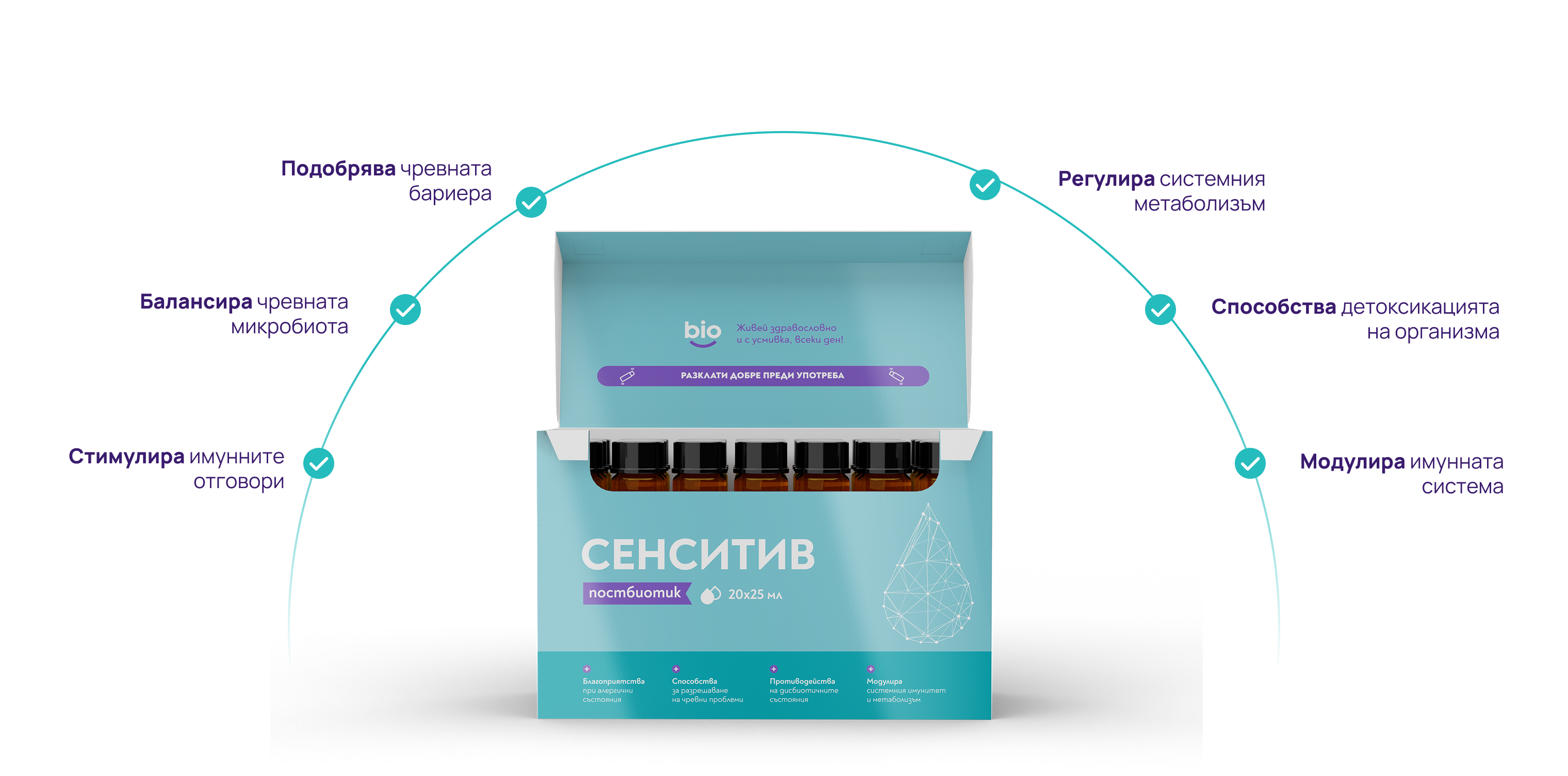 Здравият чревен микробиом играе ключова роля в регулирането на имунния отговор, намалявайки вероятността от алергични реакции. Bibiotic®Сенситив регулира производството на антитела и възпалителни молекули, което е от решаващо значение за облекчаване на симптомите на алергията. А способността му да намалява хиперчувствителността на имунната система, намалявайки нивата на възпалителни цитокини, ще подпомогне за правилните реакции на кожата, свързани с алергиите.